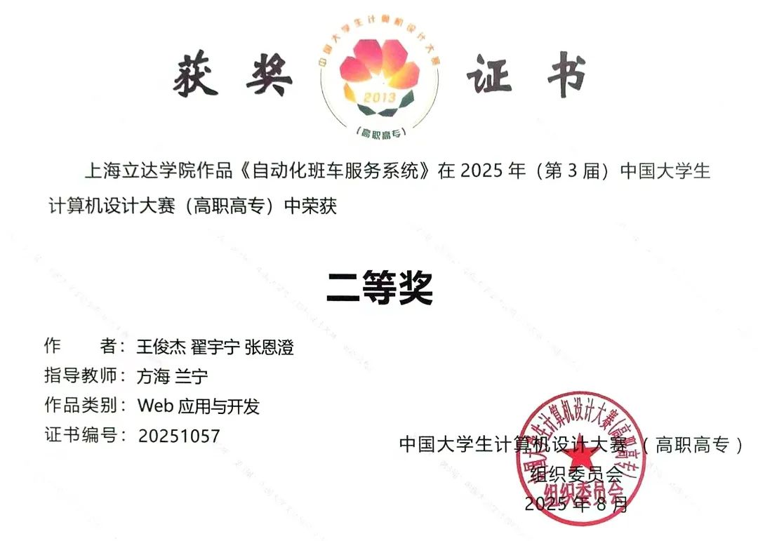 热烈祝贺公司suncitygroup太阳集团王俊杰、翟宇宁、张恩澄同学在2025年(第3届)中国老员工计算机设计大赛全国总决赛中,凭借其作品《自动化班车服务系统》脱颖而出,荣获国赛二等奖的优异成绩!