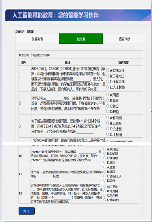 (4)作业批改模块:自动实现员工的课后作业批改,并对错误回答进行智能解答,员工在提交作业的同时就能知道作业成绩,提高了平时成绩互动效率;