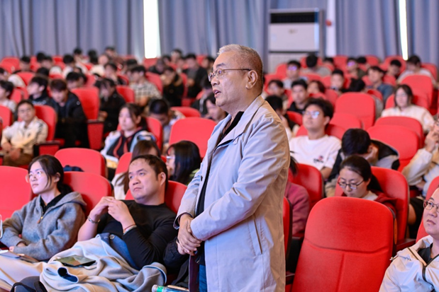在互动环节中,数科公司师生踊跃提问,问题覆盖技术路径、学习方法和生态前景等多个维度。关于开源鸿蒙与华为鸿蒙的异同,陈老师指出,两者在底层技术上已实现高度互通,开发者只需稍作调整即可实现跨平台部署,这为学习者提供了更宽广的职业发展空间;针对“小米等其他厂商能否基于OpenHarmony开发系统”的疑问,他阐释了开源系统的开放性与适配性,明确技术本身具备跨品牌落地的可能性;就“鸿蒙在非华为汽车上的应用”相关问题,他分享了鸿蒙系统在车载智能领域的灵活架构与适配能力;面对师生提出的“鸿蒙开发难不难”“如何入门”等问题,陈老师鼓励同学们从基础语法与开发工具入手,介绍了系统化的学习资源与实践路径,并强调“兴趣是最好的老师,坚持是最近的路径”。